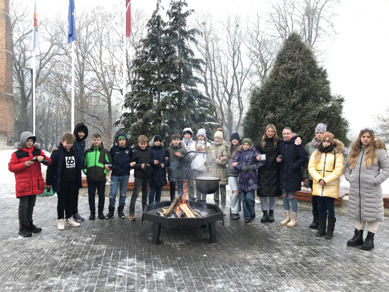 Pirmsskolas un sākumskolas skolēni sildījās pie Barikāžu piemiņas ugunskura, dzēra siltu tēju, klausījās atmodas laika mūziku un kopā ar klašu audzinātājiem pārrunāja 1991. gada notikumus;