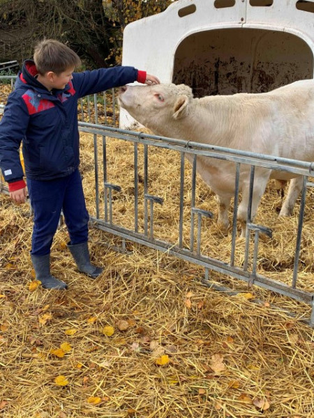 Tālāk ceļš veda uz Brūzilām, kur saimnieko Štenceļu ģimene. Redzējām īstu fermu – pilnu ar lopiņiem. Samīļojām mazos teliņus ”bērnudārzā”, pabijām fermā, apskatījām lopus ganībās. Uzzinājām, ko ēd mazie teliņi un lielās govis, kāpēc paaugušies teliņi staigā pakaļ savām mammām. Iepazināmies ar slaukšanas zāli. Uzzinājām, kā slauc govis, kāpēc un kur liek pienu. Redzējām lielās skābbarības krātuves, kuras vēl piepildīja un pieblietēja.