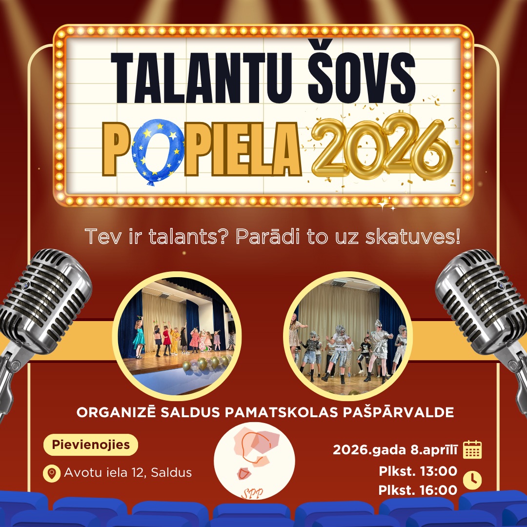 Jau trešdien, 8.aprīlī, uz Avotu ielas 12 skatuves kāps talantīgie Saldus pamatskolas skolēni un skolotāji, lai parādītu jaudīgus priekšnesumus.