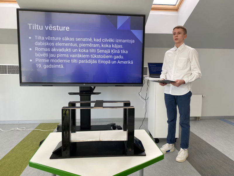 Šonedēļ skolā notika 8.klašu skolēnu pētniecisko darbu aizstāvēšana. Ļoti daudzveidīgas un pašiem skolēniem aktuālas tēmas tika aplūkotas darbos un veikti gan praktiskie darbi, gan laboratorijas darbi, gan citi pētījumi. Dizaina un tehnoloģiju jomā bija daudz praktisku darbu – batikoti, balināti, šūti un adīti izstrādājumi, uzbūvēti un konstruēti paceļamie tilti, kas darbojas gan mehāniski, gan ar hidrauliku, uzbūvēts Da Vinči tilts, no garāžā pieejamiem veciem riteņiem uzbūvēti jauni braucamrīki – tricikls un velosipēds, uzbūvēti koka soliņi, būvēts mājas makets un uzkonstruēta kaķu māja. Īstenota tulpju un mikrozaļumu audzēšana mājas apstākļos.